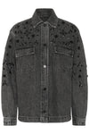 A denim jacket is always a closet staple, but if you want something with a little bit of flare, you have found it. This dark grey wash denim jacket has front snaps, 2 chest pockets and a little bit of bling with beading detail. The cut of a masculine boxy fit combined with the feminine beading is such a fun twist to add some visual interest to this piece.