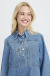 A fun and flirty denim dress quickly becomes an easy throw on piece for the season. This one features a 3/4 sleeve, collared style, 2 side pockets, button placket and two front chest pockets. Throw it on with a ballet flat or sneaker and out the door you go!