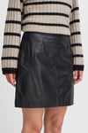 Sleek mini skirt with a smooth leather-like surface, straight silhouette and clean-paneled construction. Features minimal seaming, mid-rise waist and a zip closure at the back for a modern, effortless look.